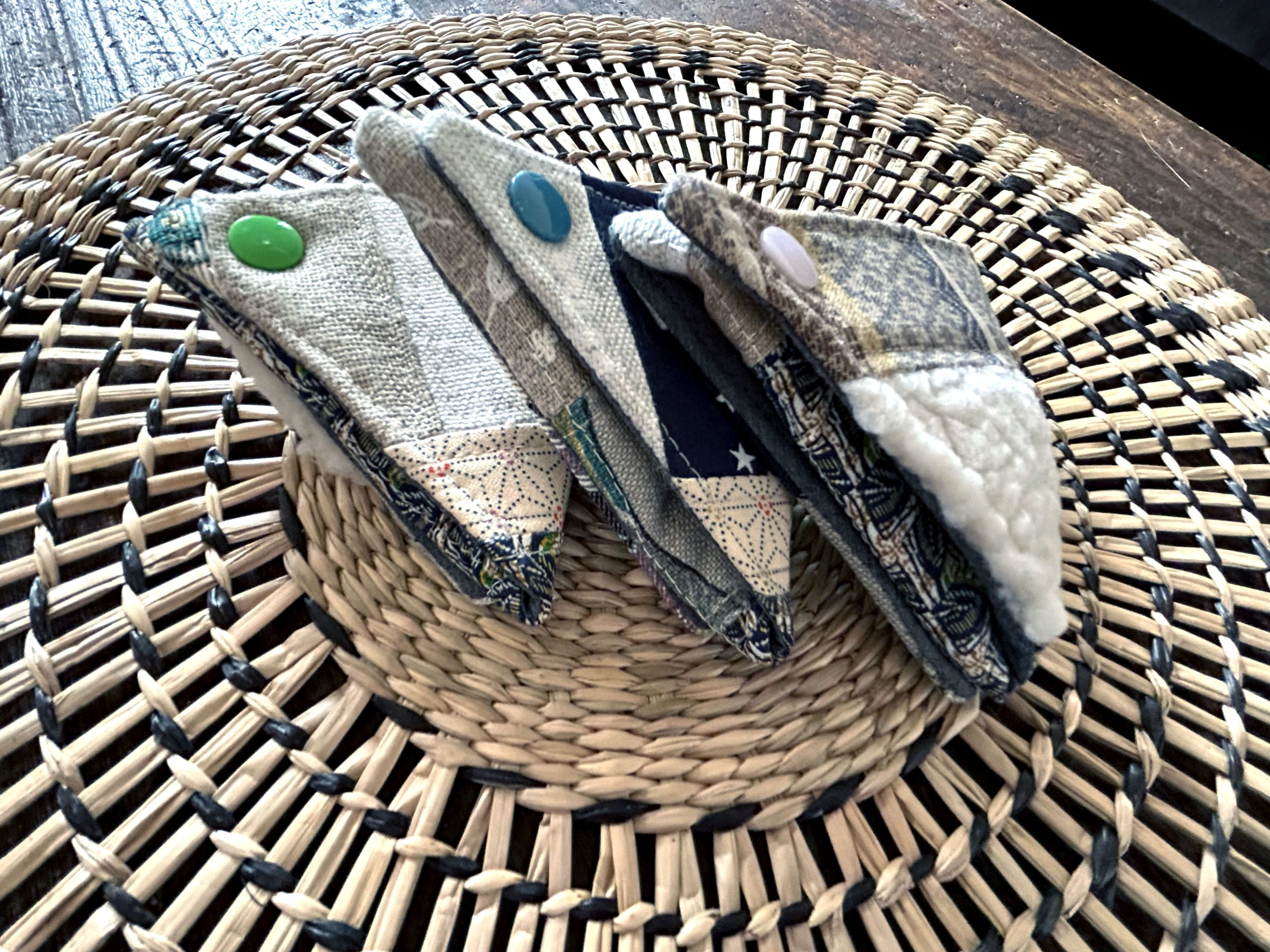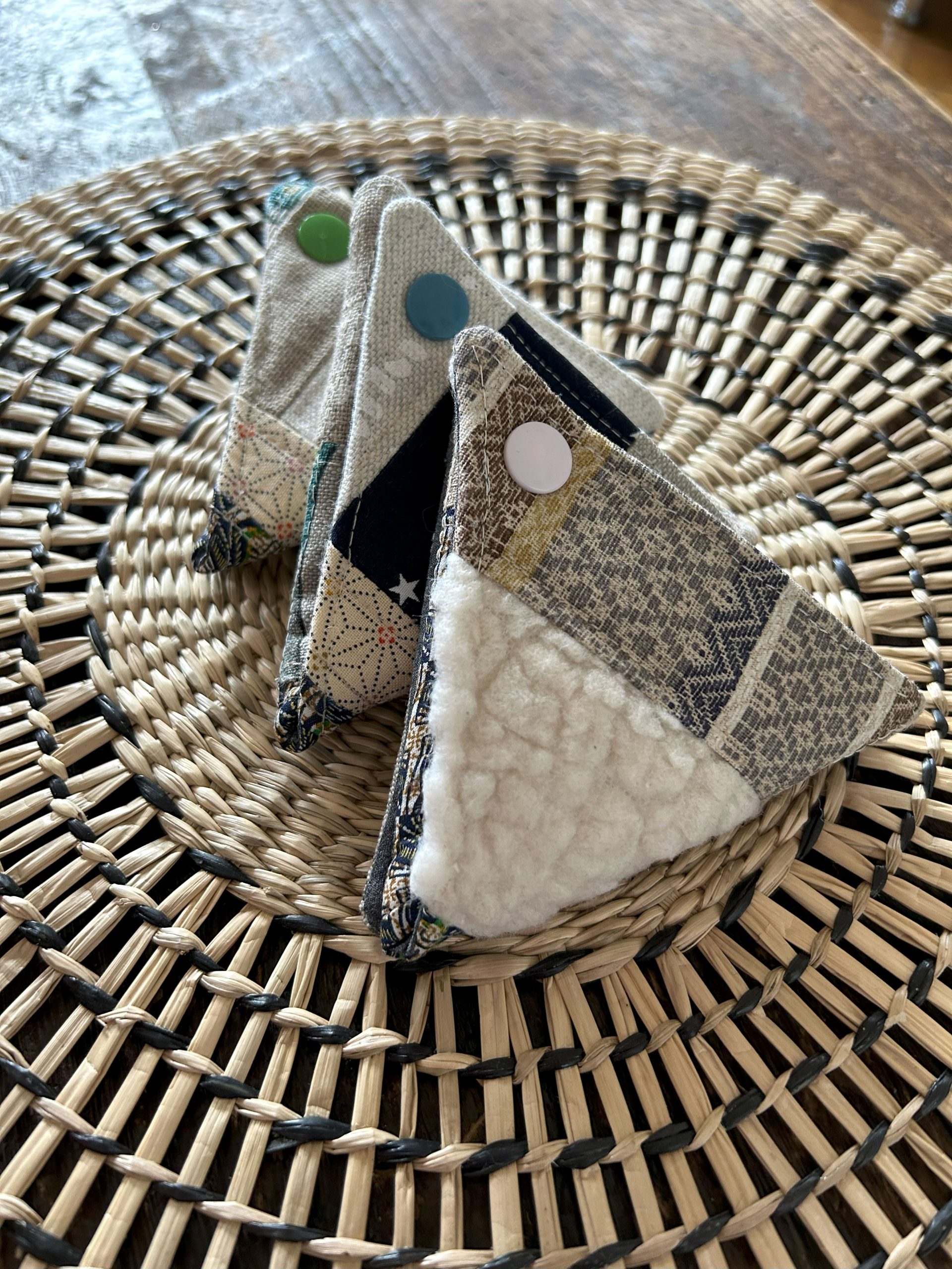 Petit porte monnaie de 10cm créé avec des chutes dans un esprit « faut pas gâcher ».